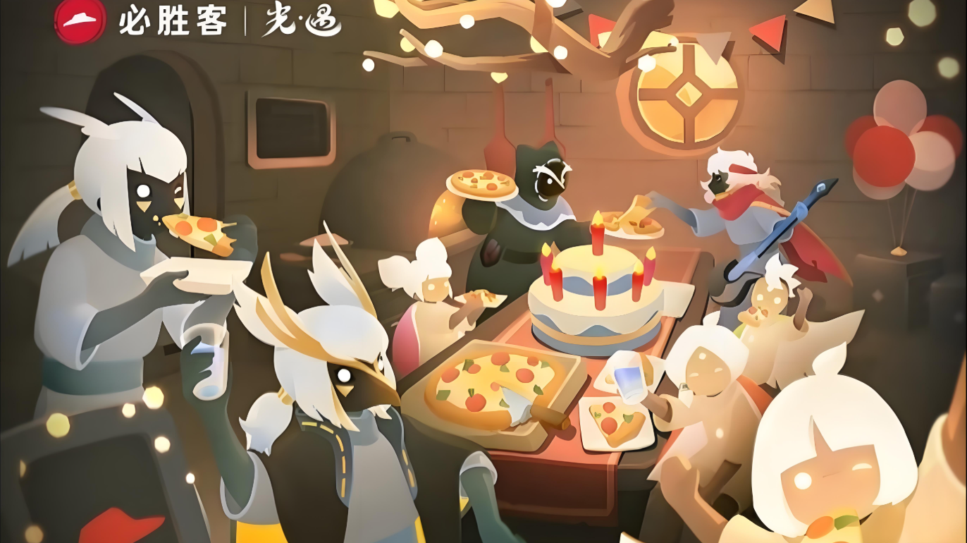 在任意场景向身旁的光之子分享披萨,可领取「必胜客联动分享披萨背饰试用魔法1」与「畅谈长桌1」。