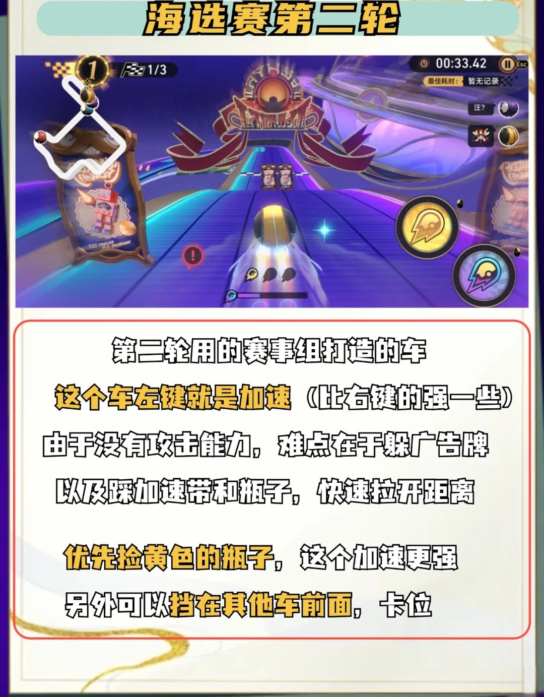 技巧:卡位阻挡对手,连续吃加速瓶拉开差距。