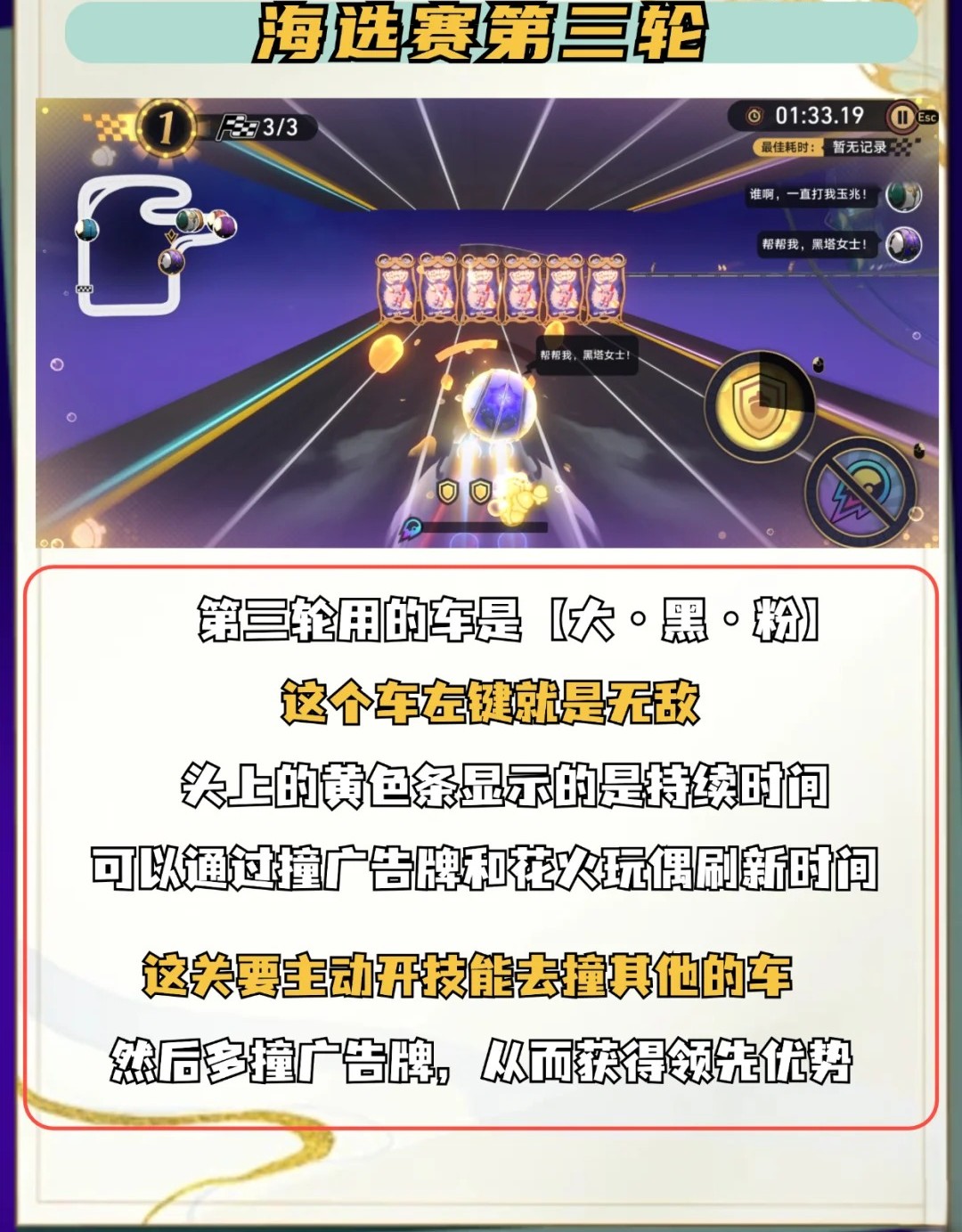 限时成就:累计完成3次无碰撞比赛,额外获得20星琼。