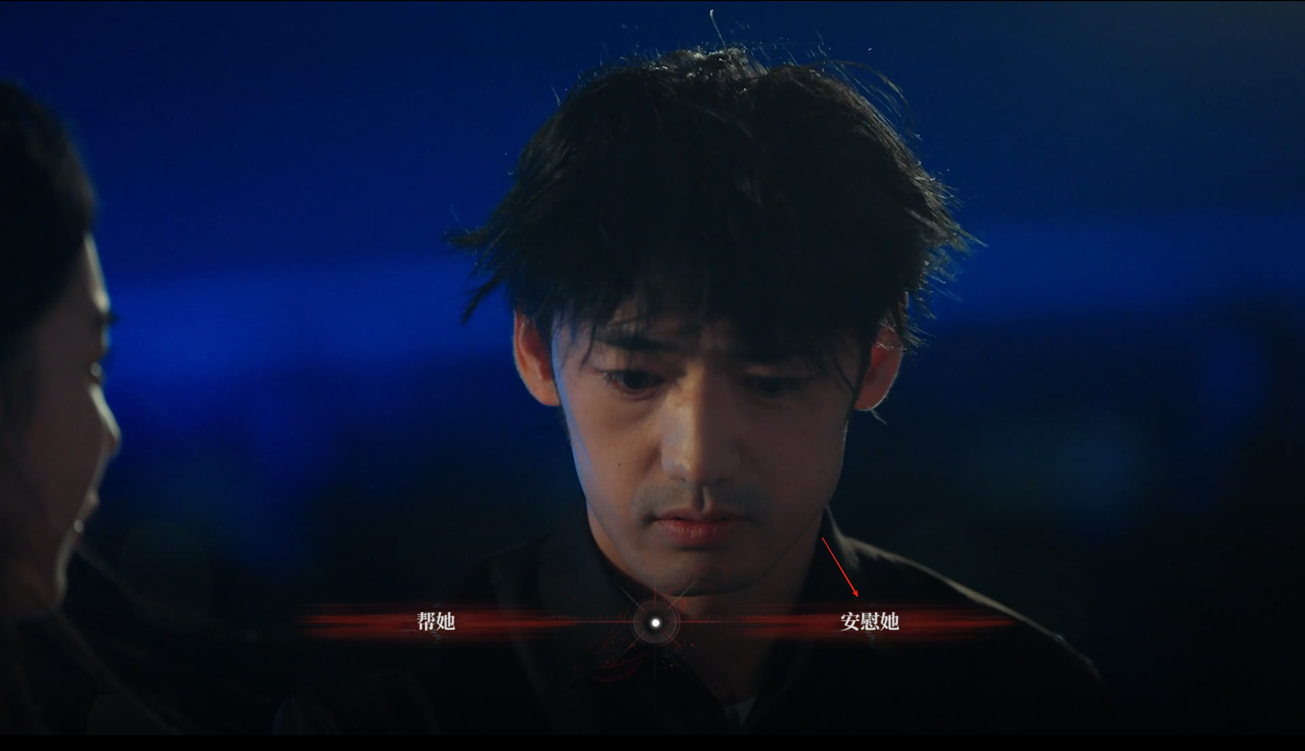 五、接下来是一个重要的节点了,剧情来到女主开始准备捞吴宇伦,这里两人在桥上相汇,陈欣欣哭诉自己被签了霸王协议,这里选择“安慰她”
