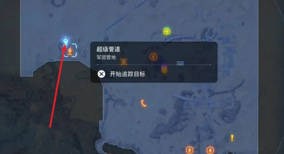 位于大沙漠:大沙漠左侧超级管道营地,穿过障碍后,位于雕像的下方