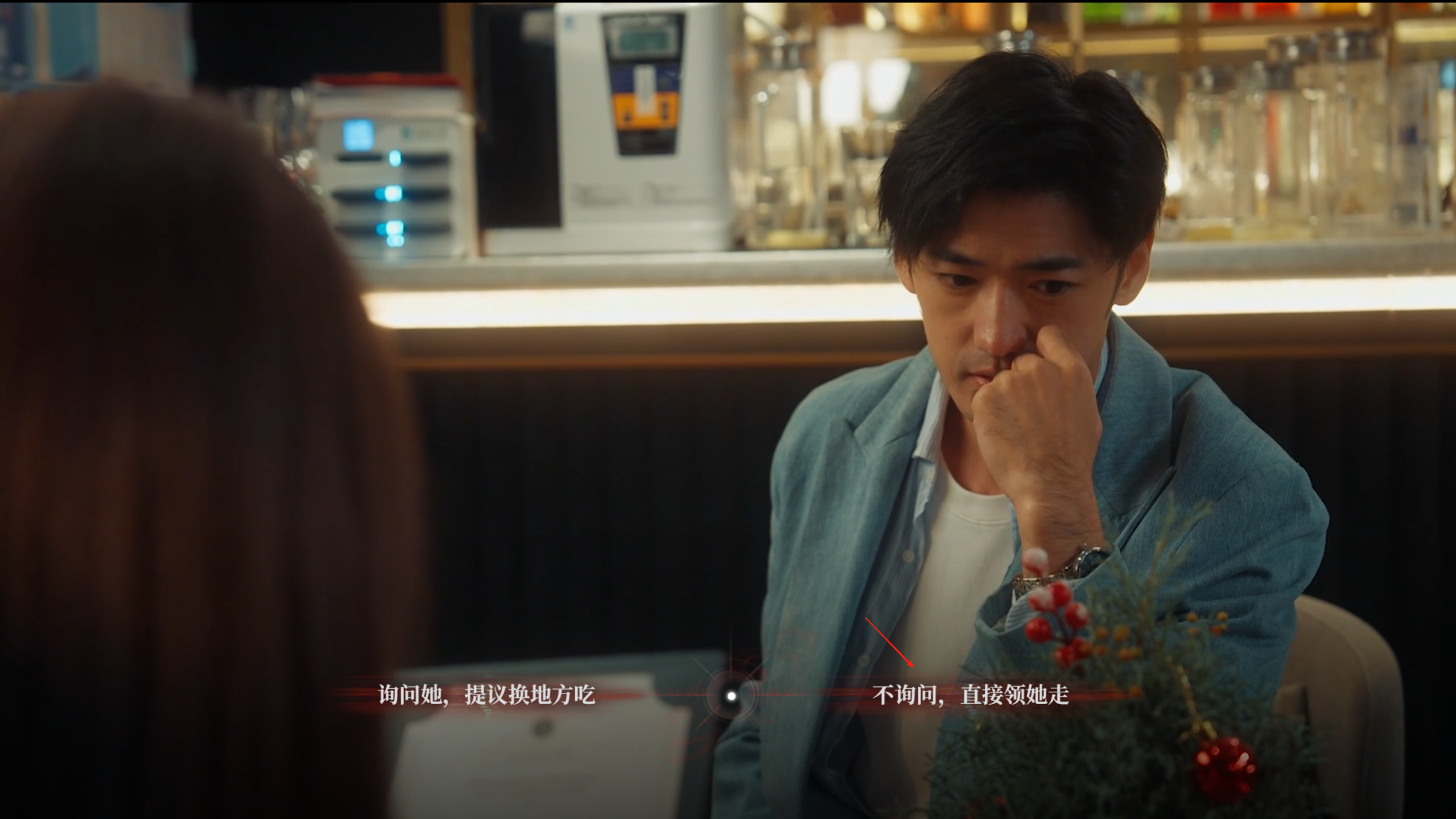 十六、来到另一家餐厅,对话剧情开始,先是有关电影的对话,这里选择“兑现晓甜的承诺”(ps:在公司团建剧情的时候,如果没有答应她帮她介绍,那么这个选项无法选择)