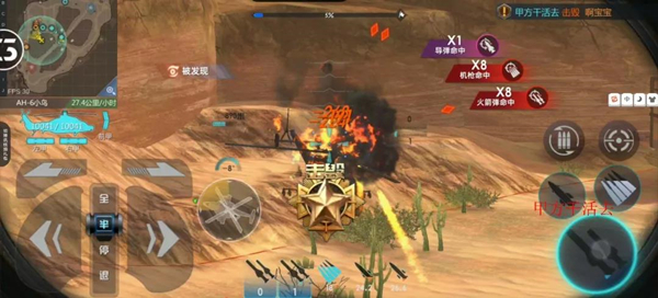 以同样脆皮直升机为例,2发导弹加一轮火箭弹,对方基本无还手之力,还能剩2000+的残血,在第一轮导弹命中后,火箭弹CD可恢复到满弹药状态,第二轮火箭弹直接可以残血收割。