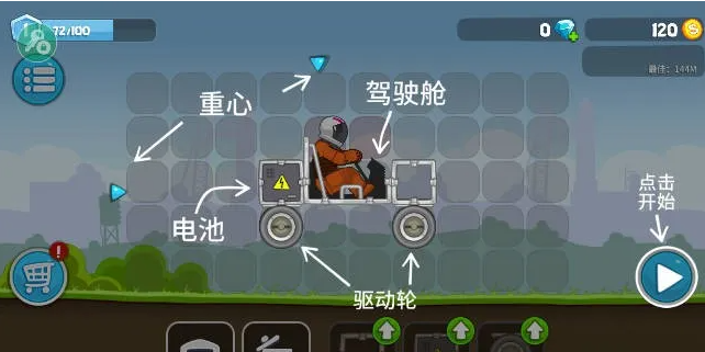特殊车型:部分攻略推荐使用无轮子的太空车型,动力全靠涡轮推进,通过油门和刹车控制车身平衡。