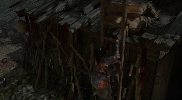 4、灵活爬上木梯,到达房顶高处,占据有利地形。