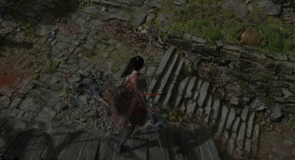 3、精英怪身后通常会有台阶,我们可利用这些台阶快速移动至左边的木梯位置。