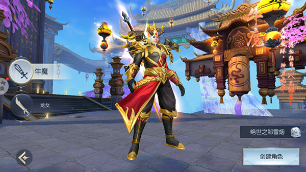 进入游戏,首先是角色创建,两种职业各有特色,牛魔是妖族最中坚的力量,保卫着妖界的和平;他们是天生的战士,擅长用强大的力量击垮敌人,用强悍的身躯守卫着妖界。 龙女龙族的女战士,神秘且强大,一出生便拥有能掌控风雨天赋,诡异莫测的身法与刀法让敌人防不胜防!不得不说,游戏在背景设定方面是下足了十成功力啦~