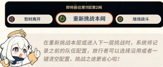 想必大家都有过这样的经历:在挑战深渊之时,仅差一秒便能成功凹进七分钟,却不慎操作完毕,无奈之下只能直接进入下一间,而无法退出重来。