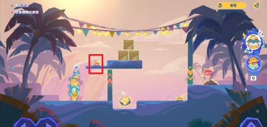 3.搬运箱子解除第二个挡板:再次切换至小矮子,此时你会注意到平台上方有三个箱子。小矮子的任务是将这三个箱子依次推落到下层。完成箱子推落操作后,切换到大个子。大个子需要调整自身位置,把从上层推落下来的箱子推到黄色按钮上。当箱子成功压住黄色按钮,第二个挡板就会被移开。
