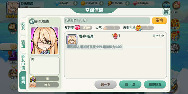 由于是卡牌游戏,所以每次进行冒险都是需要消耗体力的,游戏中获取体力的方式很多,但是最直观最简单也是最省钱的一种,就是好友互相送花,如果你有一大捧玫瑰花,那么恭喜你,找到好友互赠体力简直不要太简单,当然每日好友赠花的体力也是有上限的哦,上限是多少呢?不告诉你,哈哈哈。