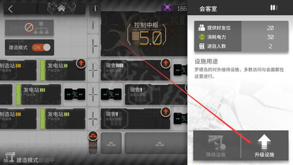 然后我们点击会客室升级图标,点击升级设施进行升级