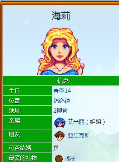 星露谷物语海莉最喜欢的礼物是:椰子、向日葵、粉红蛋糕。