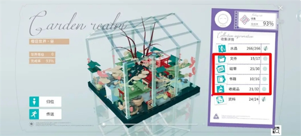 1.游戏界面右上角的小地图,堪称寻找未收集物品的得力助手。它不仅能让你总览所处区域的大致情况,还隐藏着强大的收集功能。进入游戏后,仔细观察小地图,在其相关功能模块中,有一个可以进入收集界面的入口。点击进入后,你会看到各类收集品的详细进度展示。这里面涵盖了水晶、文件、磁带、书籍、收藏品等多种物品分类。