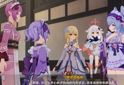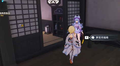 3.进入秋沙钱汤与瑞希交流:走进秋沙钱汤内部,再次触发剧情,与店员白音、阿紫交谈几句后,梦见月瑞希加入对话。之后,派蒙被白音带走,而你需要跟随瑞希行动。