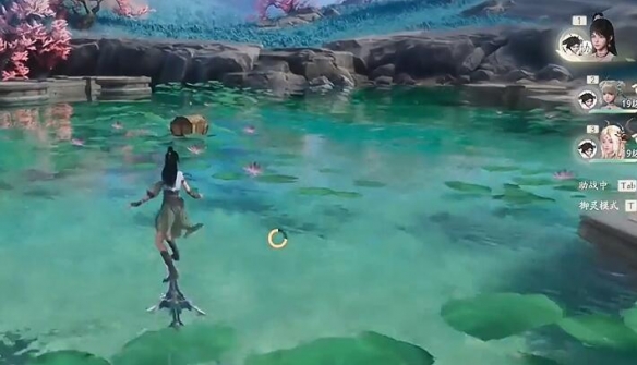 1.初始湖边宝箱:当你传送到仙灵岛的传送点后,先将视角向后转,然后沿着眼前的道路一直向前走。不久后,你便会进入到一片湖水中。在这清澈的湖水里,就藏着一个宝箱 ,只要你仔细观察湖水,很容易就能发现它的踪迹。