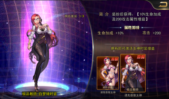 在《女神危机》游戏中性感女教师“白梦琦”是首充直接赠送的女神,那么女教师技能属性怎么样呢,怎么玩?厉不厉害值不值得买呢?下面小编就为各位介绍下《女神危机》首充女神女教师的卡牌属性,希望看过之后对各位玩家有所帮助!