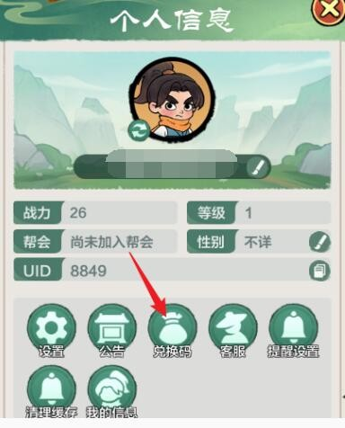 2、进入个人信息界面后,滚动至下方并点击兑换码按钮。