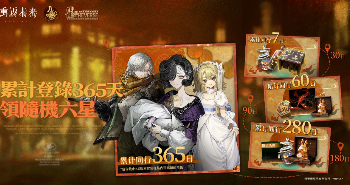 4.终极奖励:累计登录365天,可获秘闻邀请函,随机邀请一名六星角色,还有奇巧秘物匣子等你来拿!