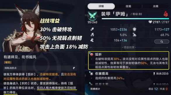 玑星太素:击破增益,敌方弱点被击破时,我方全体击破特攻提高15%,持续2回合,可叠加2层。