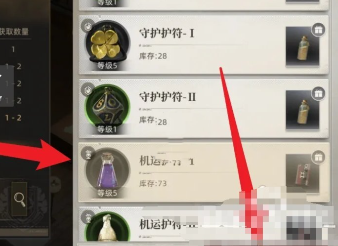 在事务所详情页内,点击右下角的“库存”按钮,进入库存管理界面。这里展示了玩家所拥有的所有护符和其它道具。