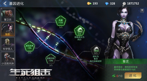 魅影在变异战中一直是处于变异体核心成员的位置,其自带的隐身技能常常是打破变异体与人类僵持状态的关键所在。在本次更新后,我们将可以使用基因道具对其进行进化操作,最终魅影将会进化为全新变异体骨灵。