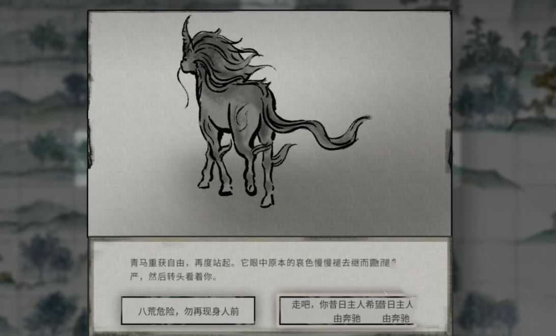 1.自由之选:选择“走吧,你昔日主人希望你自由奔驰”,青马将重获自由,感激之余离开八荒。