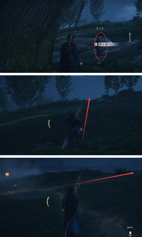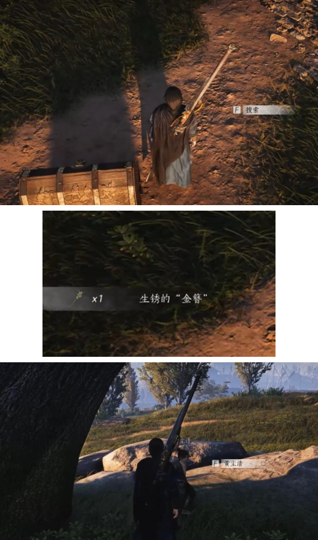 5.战斗结束后,在营地周围的草地区域仔细搜索,金簪会以闪光物品形式出现(可按互动键高亮可拾取物品)。