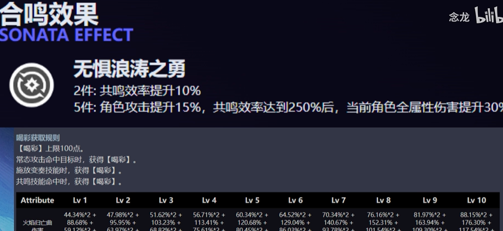 不屈:每层增加0.5%的暴击伤害。当共鸣效率超过200%时,每超过1%的效率将额外增加0.05%的暴击伤害,最多增加2%。