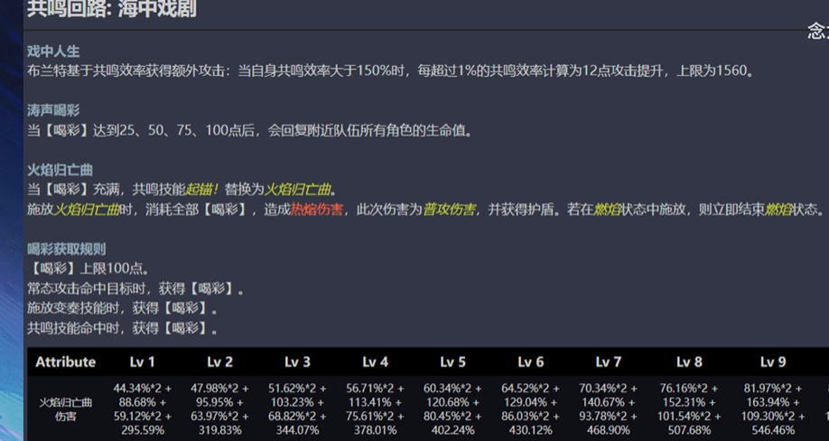 重击·惊涛骇浪:当布兰特的潮涌能量满时,可释放此强化重击。布兰特将连续三次向前踏步并劈砍,每次命中均可获得一层不屈效果并造成逐渐增加的热熔伤害。同时,每次命中敌人将造成30%的减速效果,该效果可叠加。使用此强化重击后,共鸣回路-怒潮的冷却时间将被重置,且此次伤害被视为普通攻击伤害。