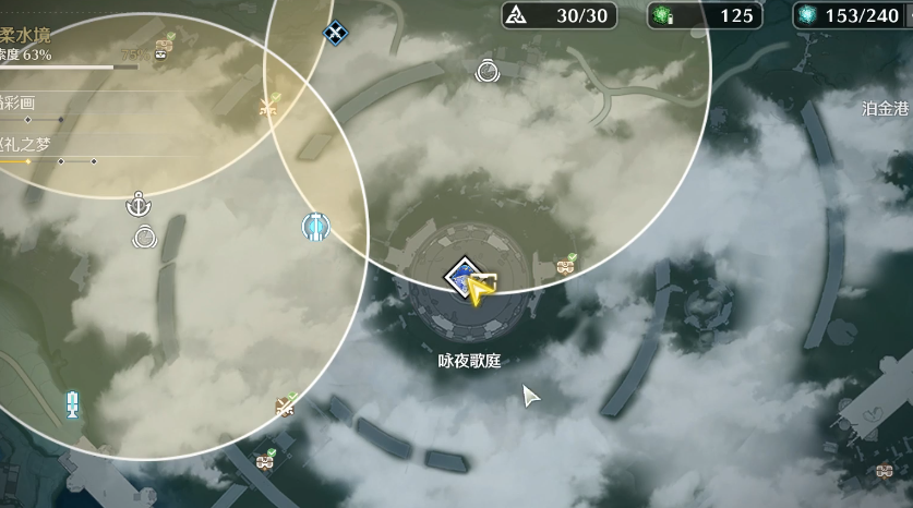 1.打开地图:首先,打开游戏内的地图,传送到黎那汐塔-氤柔水境-咏夜歌庭这个位置。