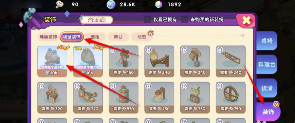 在装修页面左侧菜单栏中,找到“装饰”选项,进一步选择“墙壁装饰”分类。