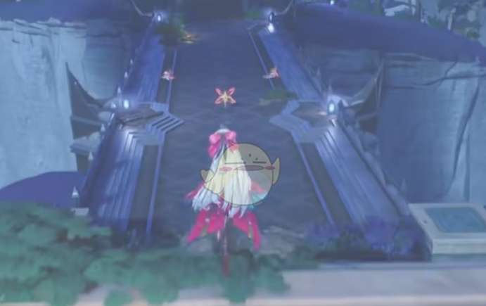 2.视角调整:传送至双子峪后,不要急于前进,先调整视角,向后退移,观察后方区域。