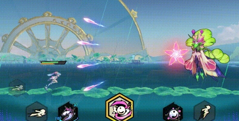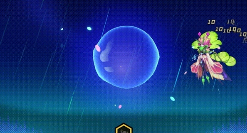 技能效果:召唤幸运水浪,凝结成超级泡泡糖。泡泡糖破裂后形成无数水波泡泡,命中敌人时造成水元素伤害,自身接触则回复生命值。