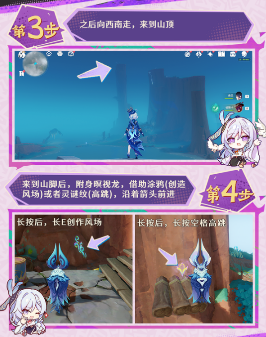 3.前往山脚下,再次利用瞑视龙扫描墙上的印记。扫描完成后,放置风场,借助风力轻松到达山顶。在山崖处找到合适的角度进行扫描,系统会给出下一步提示。按照指引清除一波怪物,继续前进探索。