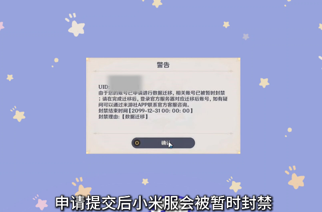 账号状态:转服完成后,米哈游通行证账号状态将会恢复正常,小米服务器账号将会永久限制登录。
