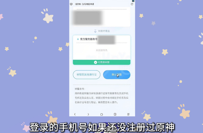确认转服信息后提交申请。提交后,玩家需要一段时间不登录《原神》,以免导致数据丢失。
