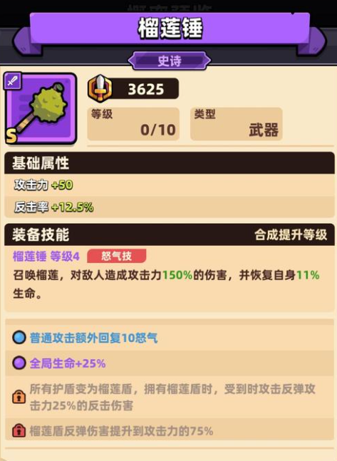 5.若对初次制作的榴莲锤不满意,可支付500金币重新制作,且无需再次消耗材料。
