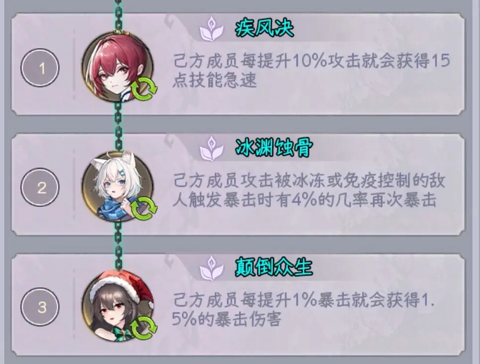 2.寒霜:暴伤和攻击频率加成,与白夜特性契合。