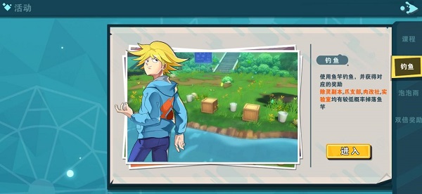 钓鱼===好了言归正传,游戏内容还是常规的游戏内容,在一定程度上呢也是比其他同类型游戏有所创新,但是最让我感兴趣的就是游戏的休闲玩法,也就是我们的钓鱼玩法和课程玩法,首先呢就来让我给你们介绍一下,是什么样的休闲玩法才能让我如此痴迷。
