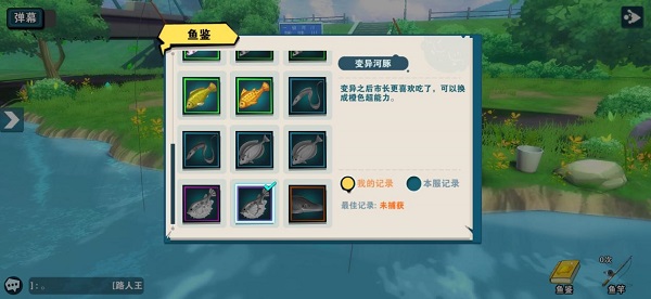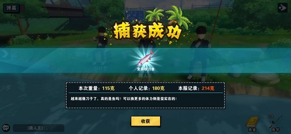 就比如我钓到了这条变异的秋刀鱼,从他的介绍上来看是可以兑换一定的体力的,也就是说我们通过钓鱼玩法,可以获得更多的体力,这对我们游戏初期的卡体力卡主线还是有很大帮助的。而且钓上来的鱼我的记录是180克,也是差一点就破了服务器记录。