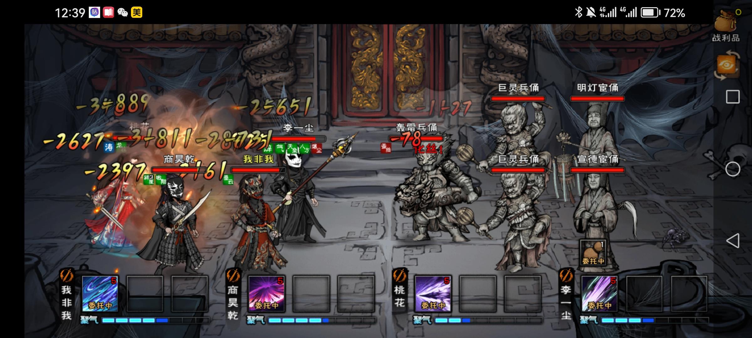 进入主殿后,立即迎战蜘蛛。蜘蛛会在一回合后进入狂暴状态,攻击力和防御力大幅提升。建议优先集中火力消灭一只,避免被群体攻击。