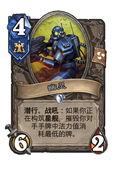 雷诺技能:强化剂,召唤2/1星舰组件衍生物(机械),具备发射时效果,增强机械阵容。