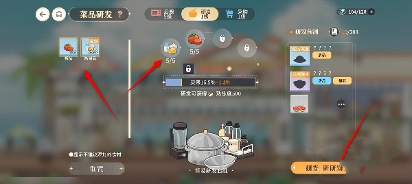 4.在餐厅内,留意右侧的“研发”按钮,点击后即可进入神秘的菜品研发页面。