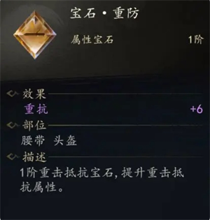 3.防御类宝石:提供闪避、元素抗性、会心抗性等生存属性,适合坦克型职业(如戟盟)或辅助角色。
