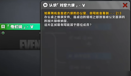 任务围绕对空六课办公室的布局展开,玩家需根据办公桌上的物品摆放,推断出对应成员的身份。