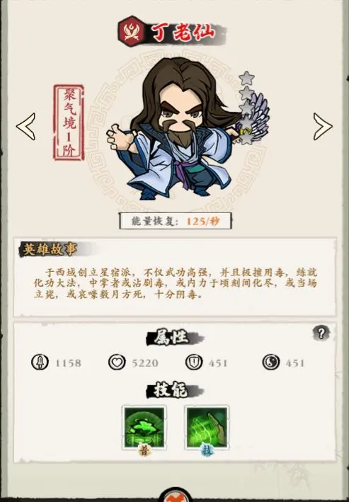 1.丁老仙:以其独特的攻击方式,能对敌人造成巨额的百分比伤害,成为通关的关键输出英雄。