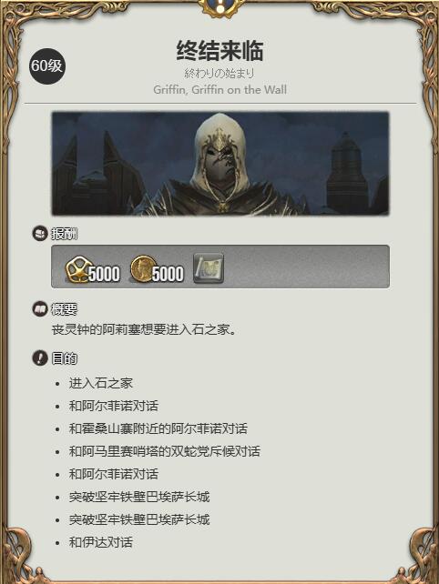 1.前置任务开启副本:玩家需先完成60级的任务【终结来临】,该任务一般在主线剧情推进过程中解锁。完成后,就能开启副本【险坚牢铁壁巴埃萨长城】。在做前置任务时,注意查看任务提示,跟随主线剧情的指引,能更顺利地完成。