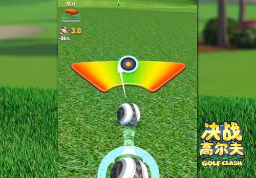 不同于足球、篮球这类体育竞技游戏,《决战高尔夫》的整体操作非常简单,玩家只需拖动并放开高尔夫球,便能完成击球操作。另外,每次击球时,屏幕中还会出现指针盘或箭头,当指针或箭头摆动到中心位置时放开高尔夫球,就能打出完美。