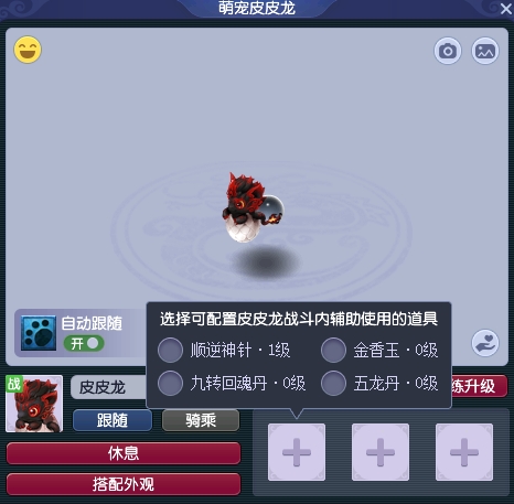 萌宠皮皮龙可在阵营内的地图进行蓄力加速,快速到达目标地点,并且在战斗中有几率触发战斗效果(回血、复活等),如果想要了解更多萌宠皮皮龙的功能,少侠可以亲自前往阵营进行探索。