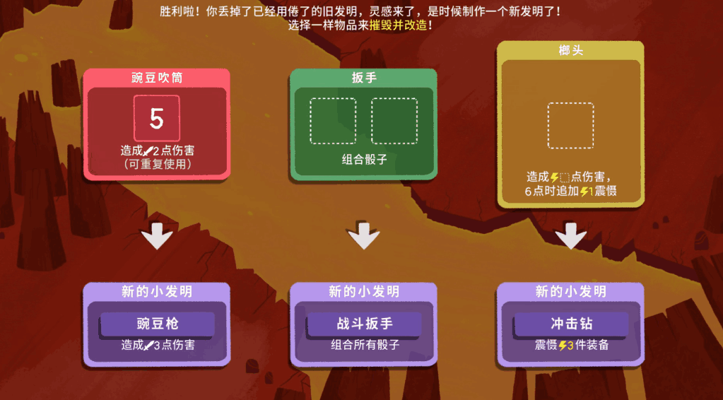 在我玩过的卡牌游戏中,都是通过随机抽中卡牌并根据卡牌的技能进行使用。 这样的游戏规则玩久了多少有些死板。而骰子地下城则成功的让卡牌的组合与使用变得灵活了起来,获得卡牌很关键,但更关键的是不同卡牌所需电子数与每回合随机获得的骰子。比如我抽中了点数很低的骰子,而杀伤力的卡牌需要6点才能激活,但我有了可以重新洗点的卡牌便可以让我有机会重新获得随机的骰子,从而让我有机会获得6点使用高杀伤力卡牌。